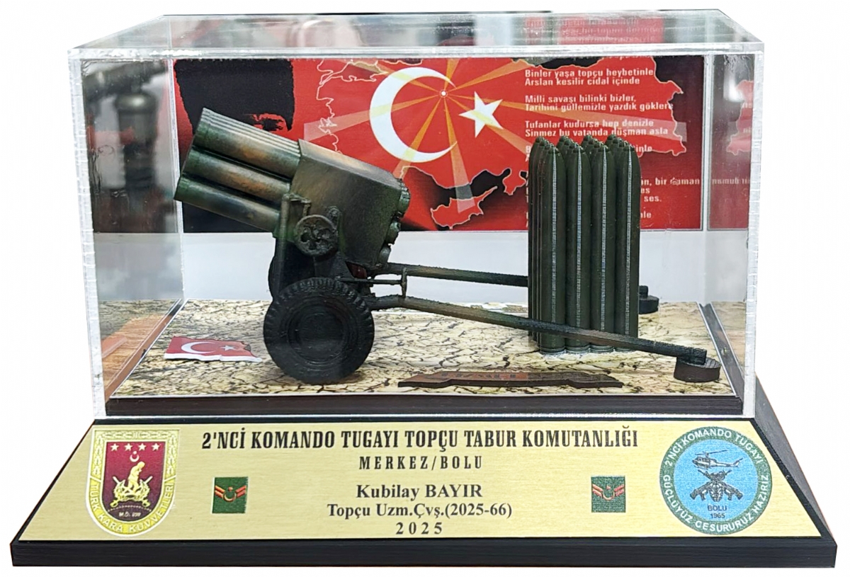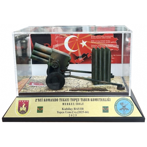 1- 21,5X14,5 CM. AHŞAP TAKOZ ÜZERİNE MONTELİ 107MM ÇNRA MAKETİ