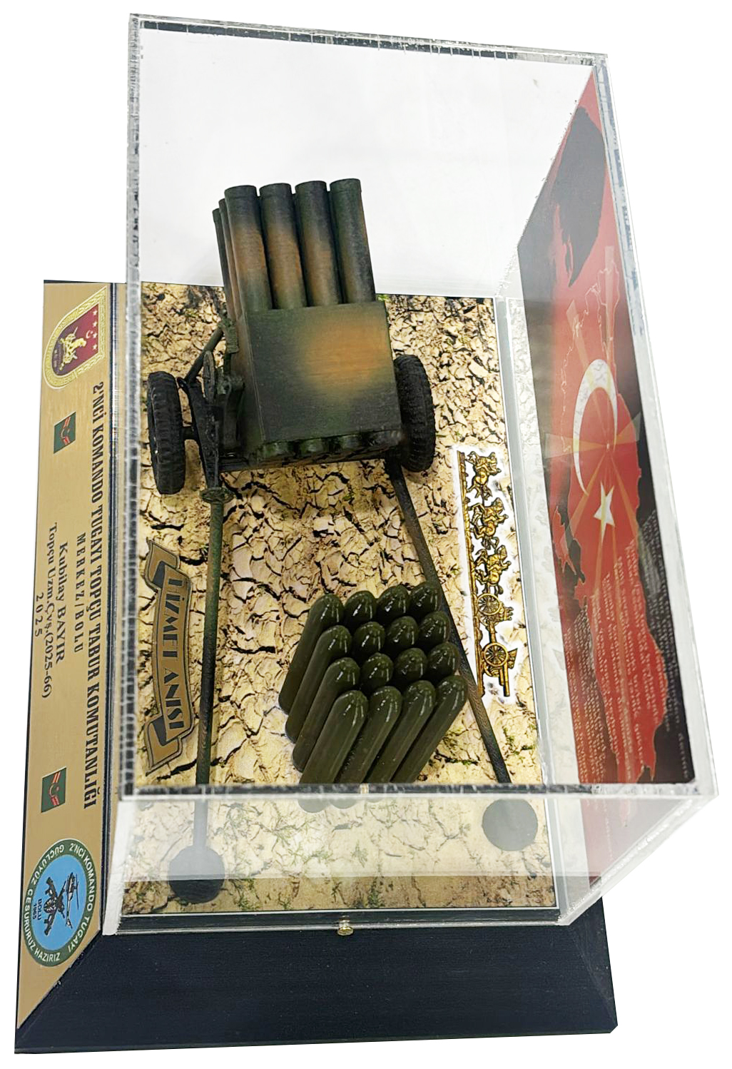 1- 21,5X14,5 CM. AHŞAP TAKOZ ÜZERİNE MONTELİ 107MM ÇNRA MAKETİ